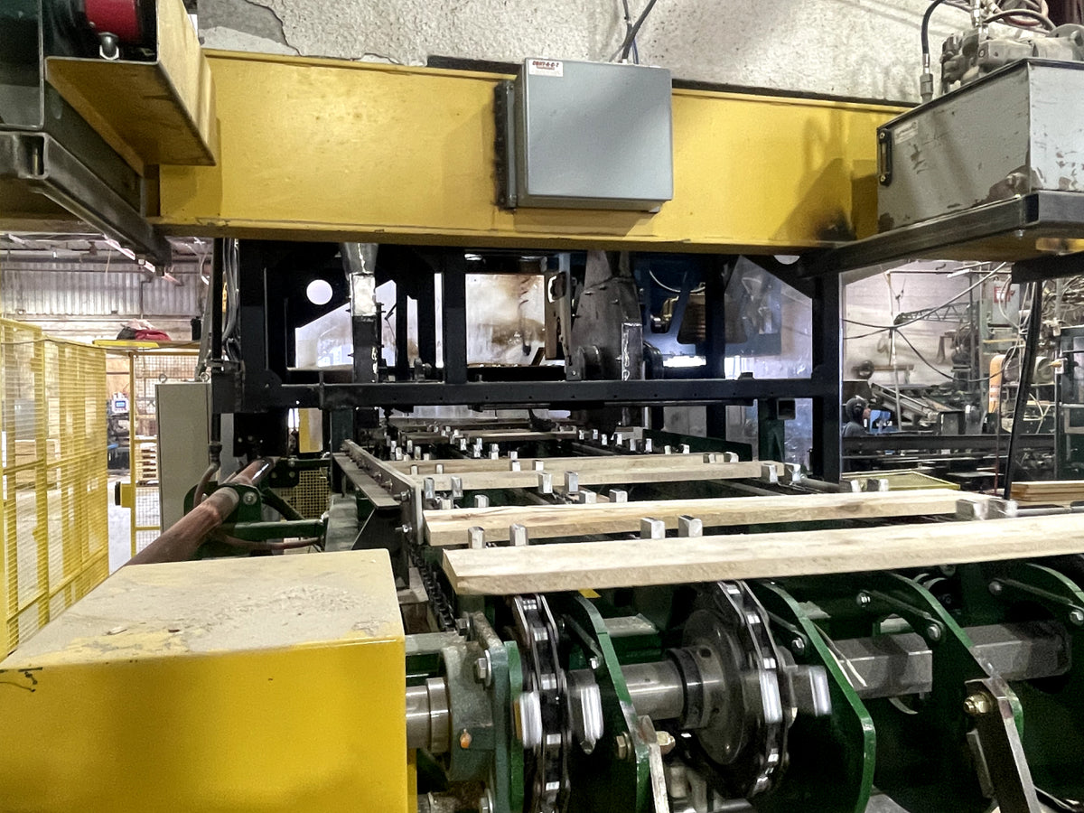 Nous possédons l’expertise et l’équipement nécessaire à la fabrication et au contrôle de la qualité de tous nos produits. Notre chaîne de production intégrée verticalement nous permet de maîtriser chaque étape, du bois brut à la livraison du produit fini. Nous transformons la matière première; du débitage à la scierie, le découpage des composantes, l’assemblage, le traitement thermique et l’expédition. Cette intégration garantit qualité, efficacité et flexibilité, répondant ainsi à vos besoins en bois industriel, palettes et composants personnalisés.